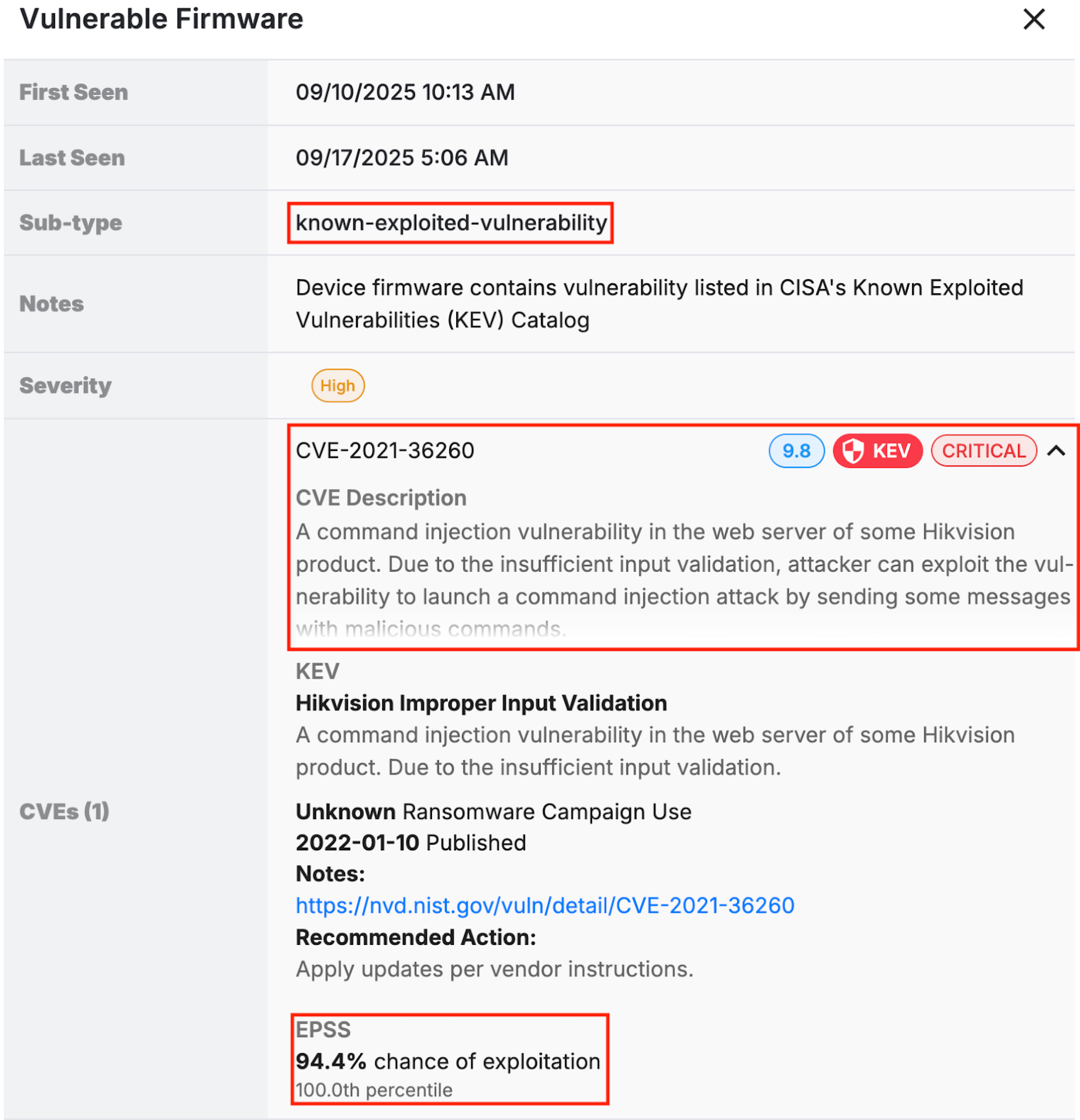 - Direct correlation of device vulnerabilities against CISA’s authoritative KEV catalog